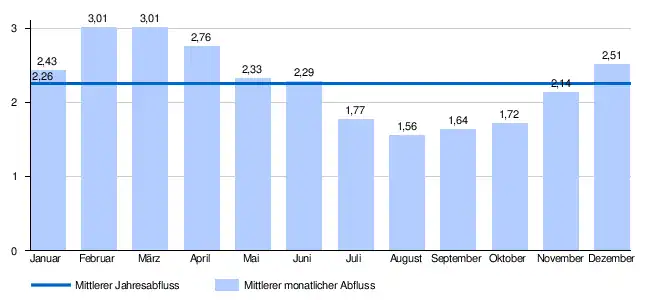 2. a b c Modellierter mittlerer jährlicher Abfluss. In: Topographische Einzugsgebiete der Schweizer Gewässer: Teileinzugsgebiete 2 km². Archiviert vom Original (nicht mehr online verfügbar) am 8. September 2017; abgerufen am 7. September 2017.