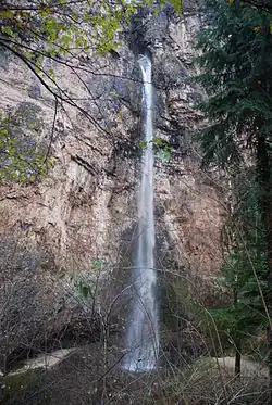 - Salurner Wasserfall im hinteren Bereich des Dorfes. Das Wasser stürzt aber nur noch nach starken Regenfällen von den senkrechten Felswänden, da bei Arbeiten der Wildbachverbauung versehentlich die wasserundurchlässige Erdschicht abgetragen wurde.