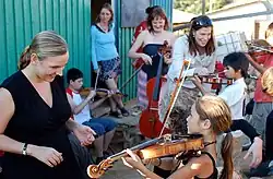 - ↑ Stephanie Schiller: Ein Leben voller Geigen – Musikerin hilft Jugendlichen. 8. Juli 2010, abgerufen am 14. Juli 2023 (deutsch).