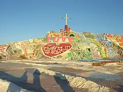 Der Salvation Mountain ist aus Tonnen von Lehm, Stroh und Farbe hergestellt. Leonard Knight (* 1. November 1931 in Vermont; † 10. Februar 2014 in El Cajon[1]) fertigte ihn an, um die Botschaft „Gott liebt alle“ mitzuteilen. Knight verzichtete bewusst auf Geldspenden, damit sein Werk nicht von bestimmten Gruppen instrumentalisiert werden kann. Er lebte ohne fließend Wasser und Strom in einem von ihm gestalteten 1930er-Truck von Chevrolet. Er war nur über den Postweg zu erreichen.