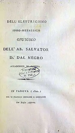 - Dell'elettricismo idro-metallico opuscolo II. fratelli Conzatti & compagno, Padova 1803 (italienisch, beic.it).