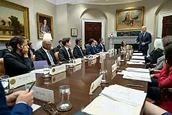 Im Jahr 2019 veranstaltete Altman in seinem Haus in San Francisco eine Spendenaktion für den demokratischen Präsidentschaftskandidaten 2020, Andrew Yang.[60] Im Mai 2020 spendete Altman 250.000 US-Dollar an American Bridge 21st Century, einen Super-PAC, der den demokratischen Präsidentschaftskandidaten Joe Biden unterstützte.[61] Nach der erneuten Wahl Donald Trumps im November 2024 änderte Altman seine Haltung, diente sich dem künftigen US-Präsidenten an und gilt jetzt als Trump-Unterstützer.[62] Nach der Wahl kritisierte er, dass einseitig auf Spenden reagiert wurde, da er schließlich zuvor die Demokraten unterstützte.[63]