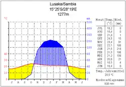Sambia hat mildes tropisches Klima, das durch die Höhenlage gemäßigte Temperaturen aufweist (Kalttropen). Es gibt drei Jahreszeiten: