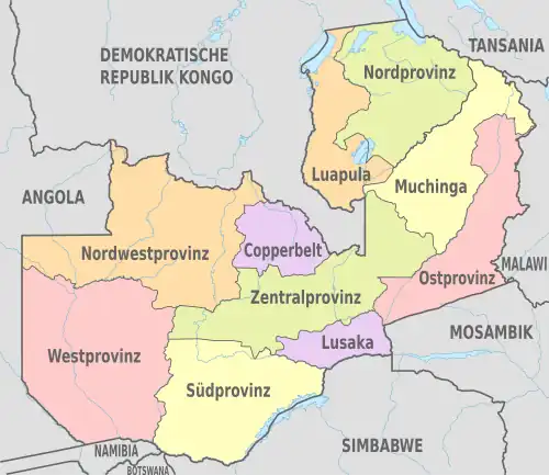 - ↑ Zambia: Provinces, Major Cities & Urban Centers - Population Statistics, Maps, Charts, Weather and Web Information. Abgerufen am 26. Dezember 2023.