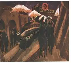 | Berliner Straßenszene[13] | 1913 | Öl auf Karton | 121 × 95 cm | ![]() |