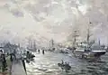 Franz Skarbina | Der Hafen in Hamburg von Wiezel’s Hotel aus gesehen | Pastell auf Papier | 106 × 142 cm | 1893 | Geschenk vom Kunstverein, im Zweiten Weltkrieg in London als Feindvermögen verkauft, Verbleib unbekannt |