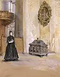 Alfred Mohrbutter | In der Kirche zu Allermöhe | Öl auf Leinwand | 110 × 154 cm | 1896 | Geschenk Senator Gerhard Hachmann aus dem Vermächtnis J. H. von Fintel und Frau, geb. Cordes (Inv. Nr. 1793) |