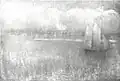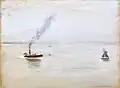 Gustav Marx | Hafen von Teufelsbrück | Pastell auf Papier | 53,5 × 77,5 cm | 1890 | Erworben aus verschiedenen Beiträgen, 1919 verkauft, Verbleib unbekannt |