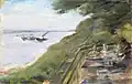 Ludwig Dettmann | Am Deich bei Waltershof | Aquarell auf Papier | 41 × 73.5 cm | 1890 | Erworben aus verschiedenen Beiträgen 1923 verkauft, Verbleib unbekannt |