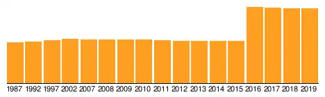 | Jahr | 1987 | 1992 | 1997 | 2002 | 2007 | 2008 | 2009 | 2010 | 2011 | 2012 | 2013 | 2014 | 2015 | 2016 | 2017 | 2018 | 2019 |