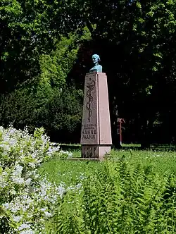 Aufgrund seiner Verdienste wurde Hahnemann bereits am 10. April 1841 zum Ehrenbürger von Meißen ernannt.[21] In seiner Geburtsstadt Meißen wurde am 11. April 1855 am ehemaligen Geburtshaus Hahnemanns Neumarkt 59 eine gusseiserne Gedenktafel angebracht. Die Inschrift lautet: „HIER WARD GEBOREN, // CHR. FR. SAMUEL // HAHNEMANN // DER BEGRÜNDER DER // HOMOEOPATHIE, // D. 10 APRIL 1755.“ Eine ebenfalls an der Hausfassade angebrachte Büste Hahnemanns aus Gips folgte 1861. Gedenktafel und Büste wurden 1898 an der Fassade des Nachfolgebaues angebracht und aufgestellt. Zur Förderung des naturwissenschaftlichen Unterrichts an der Meißner Stadtschule wurde auf Initiative eines Finanzprokurators aus Meißen am 11. April 1855 eine Hahnemann-Stiftung ins Leben gerufen. Am 16. April 1855 wurde für die Stiftung im „Meißner Tabeblatt“ geworben und um Spenden gebeten.[22] Für den Bau eines Denkmals für Hahnemann wurden 1922 Spenden-Medaillen aus Meissener Porzellan von der Porzellanmanufaktur Meißen mit verschiedenen farblichen Dekoren hergestellt. Die Medaillen zeigen das Porträt von Hahnemann sowie die Domtürme von Meißen. Zudem trugen die Medaillen die Aufschrift „Baustein für das Hahnemann-Denkmal“.[23] Zum Bau des Denkmals kam es durch die Inflation vorerst nicht. Zum 200. Geburtstag von Hahnemann im Jahre 1955 gab man eine weitere Gedenk-Plakette aus Meissener Porzellan heraus, außerdem wird erneut der Bau eines Denkmals durch den Stadtrat von Meißen geplant. In der Parkanlage hinter der Meißner Nikolaikirche steht seit 1957 ein von Emil Paul Börner entworfener Obelisk aus rotem Meißner Granit, der mit einer bronzenen Büste Hahnemanns bekrönt wird. Die Büste wurde noch zu Lebzeiten Hahnemanns von Franz Woltreck modelliert.[24] Im Stadtzentrum von Meißen hatte man bereits am 11. April 1855 dem Hahnemannsplatz auf Anregung von Bürgern sowie vom damaligen „Centralverein homöopathischer Ärzte“ seinen Namen gegeben. Auch eine Apotheke wurde als Hahnemann-Apotheke nach ihm benannt.
