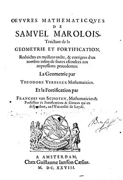 - Oeuvres mathématicqves de Samuel Marolois, traictant de la Géométrie et Fortification, réduietes in meilleur ordre, et corrigées d'un nombre infiny de fautes ecsulees aux impressions précédentes, Amsterdam 1627, Digitalisat