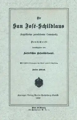 - ↑ Kaiserliches Gesundheitsamt: Die San-José-Schildlaus. Denkschrift, zweiter Abdruck 1898. Springer Verlag, Heidelberg.