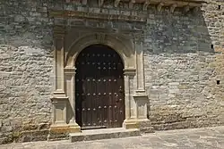 Die Kirche hat zwei Portale, das Südportal aus der Zeit der Renaissance mit der eingemeißelten Jahreszahl 1575 („AÑO 1575“) und ein Rundbogenportal an der Westfassade. Bei der Renovierung der Kirche in den 1980er Jahren fand man Hinweise auf ein Portal an der Südseite des Hauptschiffs, von dem das Tympanon mit dem Relief eines Kreises und dem Christusmonogramm in der Kirche erhalten ist.