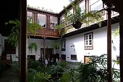 Im Inneren öffnet sich ein erster weiter Innenhof mit verglasten Galerien, die von Holzsäulen getragen werden, deren oberen Abschluss interessante Holzarbeiten bilden. Die Haupttreppe auf der Hinterseite des Hofes besteht im ersten Lauf aus Stein, in den folgenden aus Holz. Ein weiterer Innenhof hatte früher einen Zugang zur seitlich verlaufenden Calle Viana.