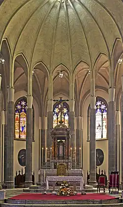 Als Folge der vielen Umbauten und Eingriffe in die Grundstruktur des Gebäudes im 19. Jahrhundert ergaben sich Probleme mit der Stabilität, die dazu führten, dass die Kirche geschlossen und zur Ruine erklärt werden musste. Es wurde entschieden, die Kirche mit Ausnahme des größten Teils der Fassade abzureißen und neu im Stil der Neugotik aufzubauen. Bei dem Neuaufbau in den Jahren 1904 bis 1913 wurde die Gesamtgröße der Grundfläche eingehalten, allerdings in einer dreischiffigen Anlage. Als neues Element wurde ein Umgang um den Altarraum eingeführt.[12]