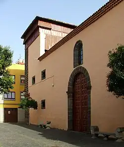 Das Franziskanerkloster San Miguel de Las Victorias (Heiliger Michael der Siege) wurde direkt nach Abschluss der Eroberung Teneriffas durch Alonso Fernández de Lugo gegründet. Mit dem Bau des Klosters wurde bereits im Februar oder März 1506 begonnen. Die wichtigsten Gebäude des Klosters konnten aber erst im Jahr 1580 fertiggestellt werden. Unterlagen über die Baugeschichte sind nicht mehr vorhanden. Wir wissen nur, dass es sich um zweistöckige Gebäude handelte, die um einen Hof angeordnet waren. Von diesem Hof gingen verschiedene Anbauten ab; im oberen Stockwerk befanden sich Schlafsäle, Zellen, Werkstätten und eine Krankenstube. Im unteren Teil waren Versorgungsräume und einige Kapellen. Der Bau der Kirche wurde in der gleichen Zeit begonnen. Von dem einzigen Schiff dessen Eingang auf der rechten Seite war, finden sich heute noch Reste in den Grundmauern des heutigen Altarraums. Es fanden immer wieder Erweiterungen statt, so dass sich die Kirche auf drei Schiffe und verschiedene Kapellen vergrößerte. Aufgrund verschiedener Unglücksfälle war es notwendig das Kloster im Laufe des 17. Jahrhunderts häufig zu renovieren. Ein weiteres bedeutendes Unglück war die schwere Überschwemmung, die La Laguna im Januar 1713 heimsuchte. Sie betraf einen großen Teil der Gebäude, die unbewohnbar wurden. Daher musste das Kloster zeitweilig verlegt werden, um die Wiederaufbauarbeiten durchführen zu können. Der Klosterhof wurde vergrößert und seit 1726 schlossen sich an den Hof Unterrichtsräume an. Auch das Franziskanerkloster lieferte so einen bedeutenden Beitrag zur Verbreitung von Bildung in La Laguna. In der Nacht des 28. Juli 1810 erlitt das Gebäude einen schweren Brand. Nur der Glockenturm und das Haus der Bruderschaft wurden verschont. Es konnten aber einige bedeutende Kunstwerke gerettet werden. Darunter der schon damals berühmte Santísimo Cristo de La Laguna, eine Figur, die als Arbeit eines unbekannten Meisters des 15. Jahrhunderts angesehen wird. Die Figur steht heute wieder am Hauptaltar vor einem in Silber getriebenem Retabel. Bei der Prozession zu Ehren des Santísimo Cristo de La Laguna, die jedes Jahr am 14. September stattfindet, wird das Kreuz mitgeführt. In einem kleinen Museum neben der Kirche befindet sich eine Nachbildung des Turiner Grabtuchs.[11] Das Gebäude steht seit dem Jahr 1986 unter Denkmalschutz.