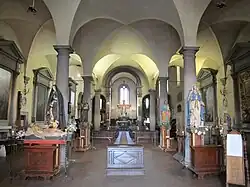 Bereits 1066 urkundlich erwähnt, besitzt sie ein typisch gotisches Inneres und eine Renaissancefassade, die Michelozzo zugeschrieben wird. Im Jahr 1153 kam sie unter die Obhut der Benediktiner des Klosters San Silvestro di Nonantola, die Mitte des 14. Jahrhunderts eine Erweiterung beschlossen: Aus dieser Zeit stammen die fünf Spitzbogenfenster, die noch heute an der Außenwand der Kirche zu sehen sind. und auch das Fresko des sechsten Altars auf der linken Seite, das dem Maestro del Bargello zugeschrieben wird. Es stellt die Madonna mit Kind, die Heiligen Jacobus der Ältere, Papst Silvester und den Abt von Nonantola dar (um 1365). Die Anwesenheit des angesehenen Benediktinerabtes als Auftraggeber verleiht dem Fresko nicht nur künstlerische, sondern auch historische Bedeutung.