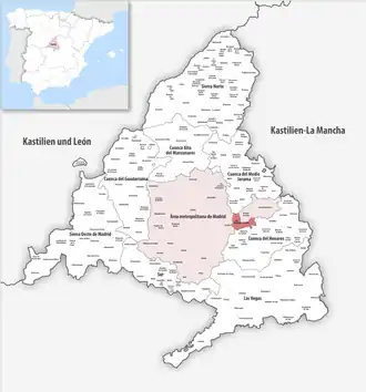 - Süden: Mejorada del Campo und Rivas-Vaciamadrid.