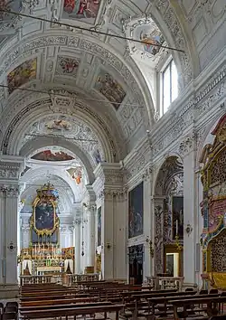Es besteht ein Kontrast zwischen dem nüchternen Äußeren und dem prächtigen Inneren. Dieses ist eines der bedeutendsten Beispiele für den Rokoko in Brescia. Sie besteht aus einem einzigen Schiff, das von geriffelten korinthischen Pilastern gekennzeichnet ist, die auf der Dachlinie einen reichhaltigen Stuckfries mit Putten in Pflanzenmotiven tragen. Darüber verläuft ein langes, ebenfalls in Stuck ausgeführtes Gebälk, das als Abschluss für das Tonnengewölbe dient, das das gesamte Kirchenschiff bedeckt und in dem sich einige Fenster befinden. Im Inneren dieses Gebälks befinden sich unter anderem elf Medaillons, die von Grazio Cossali in Fresko gemalt wurden und in Stuckrahmen von Andrea Colomba eingefasst sind, die Szenen aus dem Alten Testament und das Leben von Maria und Jesus darstellen, sowie vier Rundbögen über den Fenstern, die wiederum von Guy Louis II Vernansal in Fresko ausgeführt sind und die vier Sibyllen darstellen: Cumana, Persica, Eritrea und Tiburtina.