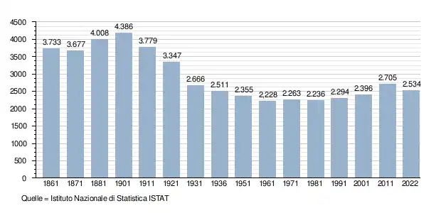 - ↑ Bilancio demografico e popolazione residente per sesso al 31 dicembre 2024. ISTAT. (Bevölkerungsstatistiken des Istituto Nazionale di Statistica, Stand 31. Dezember 2024).