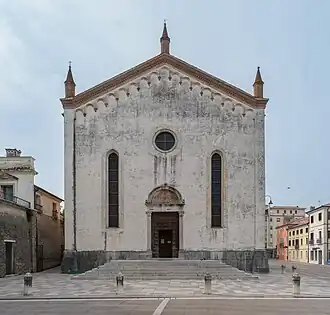 Um 1235, nachdem Treviso das beherrschende Kastell hatte zerstören lassen, entstand ein erster Terrakotta-Ziegelbau. Das romanische Bauwerk wurde mehrfach umgebaut und zuletzt in den Jahren 1921 bis 1924 so weit wie möglich in den ursprünglichen Zustand zurückversetzt; der Altar wurde ebenfalls stark abgewandelt.