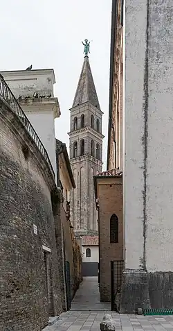 Der freistehende Glockenturm (campanile), der heute stark geneigt ist, entstand im 16. Jahrhundert.