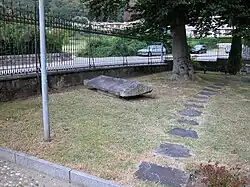 Sarkophagdeckel im Garten des Rathauses von Bioggio, 2010