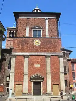 Darüber befindet sich ein Flachrelief mit dem Wappen der Familie Trivulzio in der Mitte, flankiert von zwei Putten, die das Wappen der Colleoni (links) und der Gonzaga (rechts) halten, zu Ehren der Abstammung zweier Ehefrauen der Trivulzio. In der Mitte der oberen Reihe öffnet sich ein Ajimez. Die Kapelle wird von einer achteckigen Laterne überragt. Die zweite Seite der Kirche, die dem Largo Francesco Richini zugewandt ist, besteht aus dem Kopf des linken Querschiffs, das heißt einer großen Apsis. Sie ist am oberen Rand mit einer Reihe von runden Bogenfriese verziert, während sich in der Mitte unten ein großes eingemauertes Portal mit einer kleinen, von zwei schlanken Säulen getragenen Vorhalle befindet. Neben der Apsis des linken Querschiffs befindet sich die Kapelle der Heiligen Katharina, ein Werk von Antonio da Lonate (1456–1541), der sie in Anlehnung an die Werke von Giovanni Antonio Amadeo errichtete und sich durch eine Kuppel mit zylindrischer Trommel und konischem Dach auszeichnet.