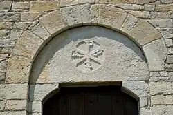 Das Portal an der Südseite des Langhauses wird von einer schmucklosen Archivolte gerahmt. Das Tympanon liegt auf zwei schlichten Kragsteinen auf. Es ist mit einem Relief verziert, auf dem ein Kreis mit sechs Speichen und dem Christusmonogramm dargestellt sind. In der Mitte sind die griechischen Buchstaben Alpha und Omega zu erkennen. Über dem Portal sind drei kleine Rundbogenfenster in das südliche Langhaus eingeschnitten.