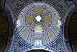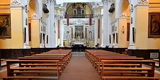 Das Innere entspricht formal einem lateinischen Kreuz, mit drei Kapellen an jeder Seite.[3] Der Raum ist relativ schlicht. Ungewöhnlich ist die Apsis, die im unteren Bereich relativ eng, eckig und klein ist, sich im oberen Bereich jedoch zu einer weiten Empore mit Hochchor öffnet, in deren Mitte die historische Orgel (von Carlo und Nicola Mancini, 1780) in ihrem teilvergoldeten barocken Gehäuse steht. Diese Raumlösung ist eine Idee von Dionisio Lazzari.[1]