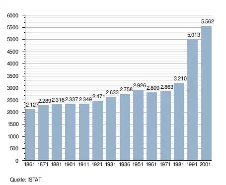 - ↑ Bilancio demografico e popolazione residente per sesso al 31 dicembre 2024. ISTAT. (Bevölkerungsstatistiken des Istituto Nazionale di Statistica, Stand 31. Dezember 2024).