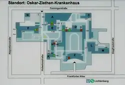 - ↑ Bericht des Bezirksamts Lichtenberg von Berlin, Ausgabe 2008. zlb.de (PDF; 2,8 MB; in das Suchfenster „Krankenhaus“ eingeben).