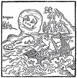 - ↑ Anna Greve zufolge (Die Konstruktion Amerikas. Bilderpolitik in den "Grands Voyages" aus der Werkstatt de Bry. Köln 2004, S. 139 u. Anm. 472), die darin wohl älteren Biografien von Hans Staden folgt (Rupp 1956, Fouquet 1957; vgl. ebda. S. 138 u. Anm. 469), legten die Schiffe vor ihrer Fahrt zu den Kanarischen Inseln wegen widriger Winde einen längeren Zwischenstopp in Lissabon ein. Die spanische Sekundärliteratur zur Sanabria-Expedition, auf die sich dieser Artikel stützt, weiß davon allerdings nichts.