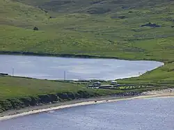 Südende mit dem Friedhof, unten der Loch of Flugarth