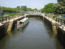 - ↑ Fred. S. Thacker: The Thames Highway. Band II: Locks and Weirs. 1920. S. 135 (neu aufgelegt 1968 bei David & Charles, ISBN 0-7153-4233-9) OCLC 55209571.