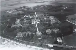 Lunder Hospital und Asyl 1928. Im Vordergrund Chefarzt-Villa mit erster Klasse Pavillons, in der Mitte der ältere Stenhammarsche „Burghof“, im Hintergrund das „Asyl“.