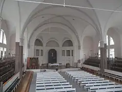Nach Rückgabe der inzwischen zweckentfremdet und sogar als Schwimmhalle genutzten Kirche im Jahr 1993 musste das Gebäude einer umfangreichen Renovierung unterzogen werden. Das Schwimmbecken allerdings gibt es immer noch: Statiker stellten fest, dass der Abriss des Betonbeckens die Stabilität des gesamten Baus gefährden würde. Deshalb wurde das Becken nur mit einem neuen Boden abgedeckt. Darauf stehen nun Bänke und der Altar. Der Kirchenraum ist etwa acht Meter niedriger als früher.