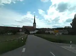 Während des Landshuter Erbfolgekriegs brannte die Pfarrkirche im Jahr 1504 nieder. Das heute vorhandene Kirchengebäude entstand 1520; die gotischen Fresken im Kirchenschiff wurden bis 1535 vollendet.[2]