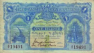 - ↑ Value of Zanzibar January 1st 1908 100 Rupees Bank Note ( des vom 8. März 2017 im Internet Archive) Info: Der Archivlink wurde automatisch eingesetzt und noch nicht geprüft. Bitte prüfe Original- und Archivlink gemäß Anleitung und entferne dann diesen Hinweis. (englisch), abgerufen am 7. März 2017.