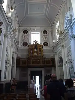 Der einschiffige, helle Innenraum erhielt durch Arcangelo Guglielmelli ein klassisches Gepräge mit glatten Säulen und Dreiviertelsäulen in Kompositordnung (ähnlich wie an der Fassade). Die Idee, den ganzen Raum und die Fassade mit Kapitellen der kompositen Ordnung zu gestalten, könnte der Architekt möglicherweise vom Grabmonument des Kardinals Brancaccio übernommen haben (siehe unten). Der ebenfalls von Guglielmelli entworfene, elegante Stuckdekor[4] besteht vor allem aus Muscheln, Tondi mit Heiligenbüsten, geflügelten Engelsköpfen über Arkaden und Fenstern und Engelsputti auf dem Gebälk. Die Dekorationen aus farbigem Marmor an Altären und Fußboden sind aus dem 17. und 18. Jahrhundert.[4] Auf der Empore über dem Eingang steht die historische Orgel aus dem 18. Jahrhundert in einem reich geschnitzten vergoldeten Gehäuse.[4]