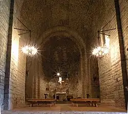 Das tonnengewölbte Langhaus ist einschiffig und hat etwa eine Breite von ca. 6,20 Meter; es wird durch zwei kleine Fenster auf der Südseite und eines im Westen belichtet, die Nordseite ist dagegen fensterlos. Von den drei Apsiden wird nur die Südapsis von einem kleinen Fenster spärlich erhellt. Die Mittelapsis ist gegenüber dem übrigen Raumniveau um zwei Stufen erhöht.
