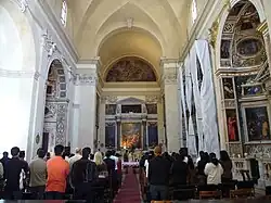 Die Kirche ist ein einschiffiger Saalbau mit jeweils drei halbrunden Kapellen an den Seiten. Guidetti orientierte sich auch hierin an der Ausführung von Santo Spirito in Sassia. Zwischen den Kapellen gliedern abermals Pilaster mit der gleichen Kapitellart wie in der Fassade die Wände. Das oberhalb des kräftigen Gesimses errichtete Gewölbe ist, für römische Kirchen eher ungewöhnlich, als Stichkappengewölbe mit Rundbogenfenstern ausgeführt, der rechteckige, eingezogene Chor wird hingegen von einem Tonnengewölbe überfangen.