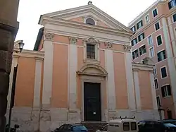 - ↑ Buchowiecki: Handbuch der Kirchen Roms, S. 625, gibt Nr. 9 an. Das mag sich im Laufe der vergangenen Jahrzehnte verändert haben, die Kirche hat heute Hausnummer 3.
