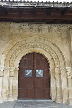 Der innere Bogenlauf ist schmucklos. Die beiden mittleren Archivolten sind mit Knospen bzw. ineinander verschlungenen Kreisen mit stilisierten Blättern und Blüten verziert. Die äußere Archivolte ist mit Halbkreisen besetzt, aus denen an den Enden eingerollte Bänder herausragen.