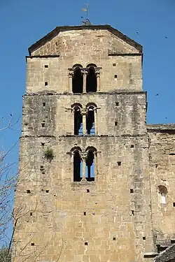 Die Kirche ist aus großen, regelmäßig behauenen Quadersteinen errichtet. Über dem südlichen Querhausarm erhebt sich der viergeschossige Turm, der in der Mitte des 12. Jahrhunderts errichtet wurde. Er wird von einer Kuppel über einem achteckigen Aufbau von geringer Höhe gedeckt und ist auf drei Geschossen von rundbogigen Zwillingsfenstern durchbrochen. Ein Fenster besitzt eine gewundene Mittelsäule.