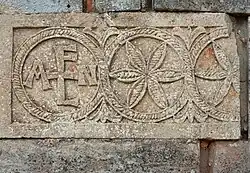 Auf dem rechten Kämpfer sind zwei Engel dargestellt, die ein Medaillon halten mit einer bärtigen männlichen Figur und den Buchstaben SOL („Sonne“). Außerdem trägt der Stein eine Inschrift, die auf die Restaurierung der Kirche im Jahr 879 durch Flamola verweist. Die Inschrift lautet: „OC EXIGVVM EXIGVA OFF(ert) D(e) O FLAMMOLA VOTUM“ (Flamola, die Geringste der Geringsten, macht Gott dieses Geschenk in Erfüllung eines Gelübdes).
