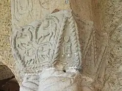 In der östlichen Loggia, die in der Zeit kirchlicher Nutzung als Chor diente, steht ein Altarblock. Es ist die Kopie eines Originals, das sich heute im Museo Arqueológico de Asturias (Archäologisches Museum von Asturien) befindet. Das Original fand hier eine Zweitverwendung, denn seine Weihinschrift besagt, dass das Gebäude, für den der Altar geschaffen wurde, Ersatz für ein Gebäude war, das unter der Last seines Alters zusammengebrochen sei.[5]