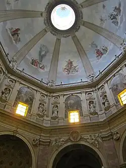 An den sechs freien Seiten des Oktogons sind halbkreisförmige Kapellen mit Altären platziert, die von Halbkuppeln bedeckt sind. Die erste Etage ist mit toskanischen Pilastern gestaltet. In der zweiten Etage als Tambour sind die Seiten mit ionischen Pilastern jeweils dreifach gegliedert, deren breitere Mittelteile mit Fresken geschmückt und Fenstern versehen sind. Die darüber liegende Balustrade führt zur großen, gerippten Kuppel mit einem Durchmesser von 27 Metern, abgeschlossen von einer Laterne mit einem Kreuz auf Höhe der Glockentürme.[3]