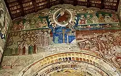 Auf dem Triumphbogen zur Apsis beeindruckt ein aufwändig gestaltetes Fresko aus dem frühen 14.Jh. mit seinem Jüngsten Gericht.